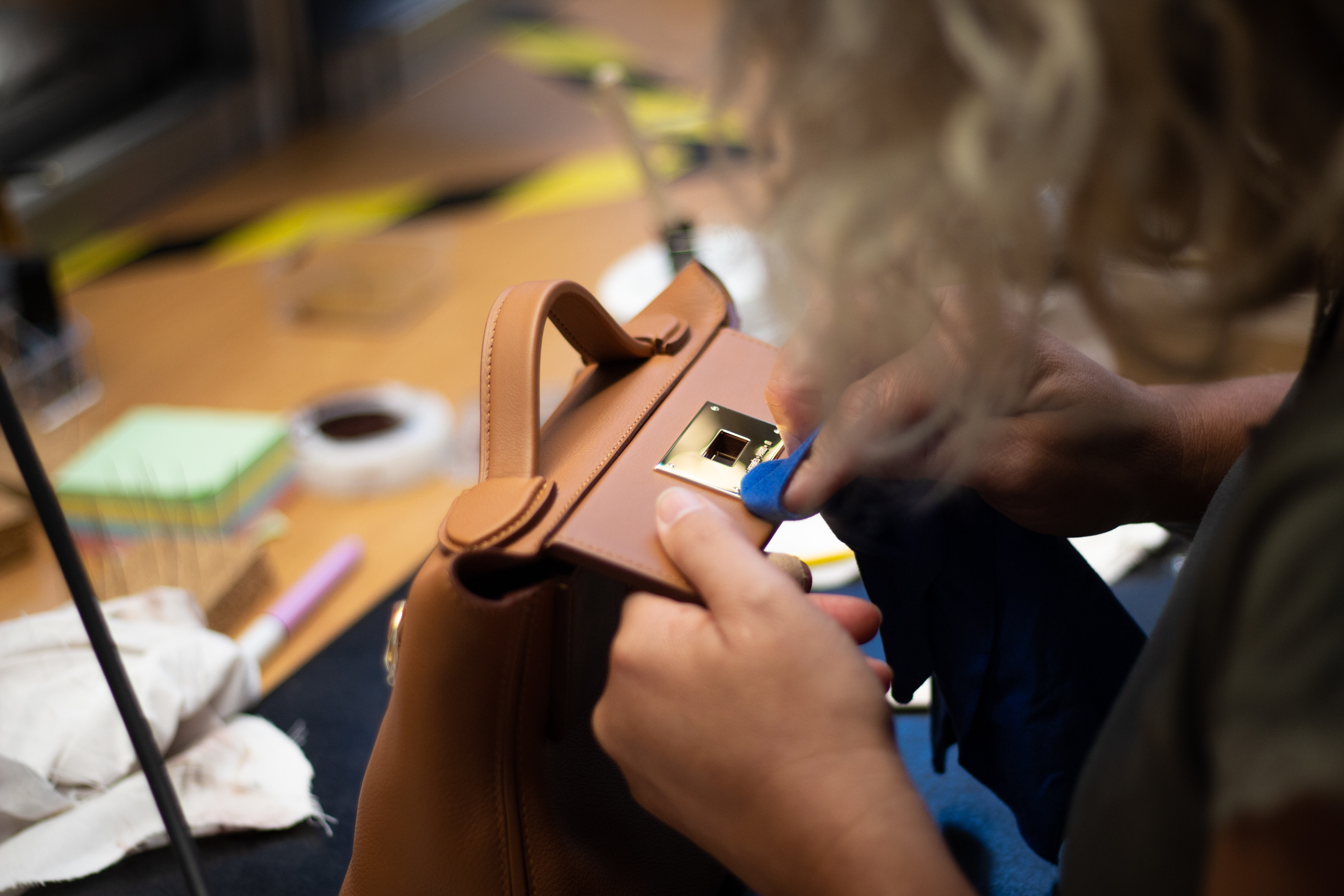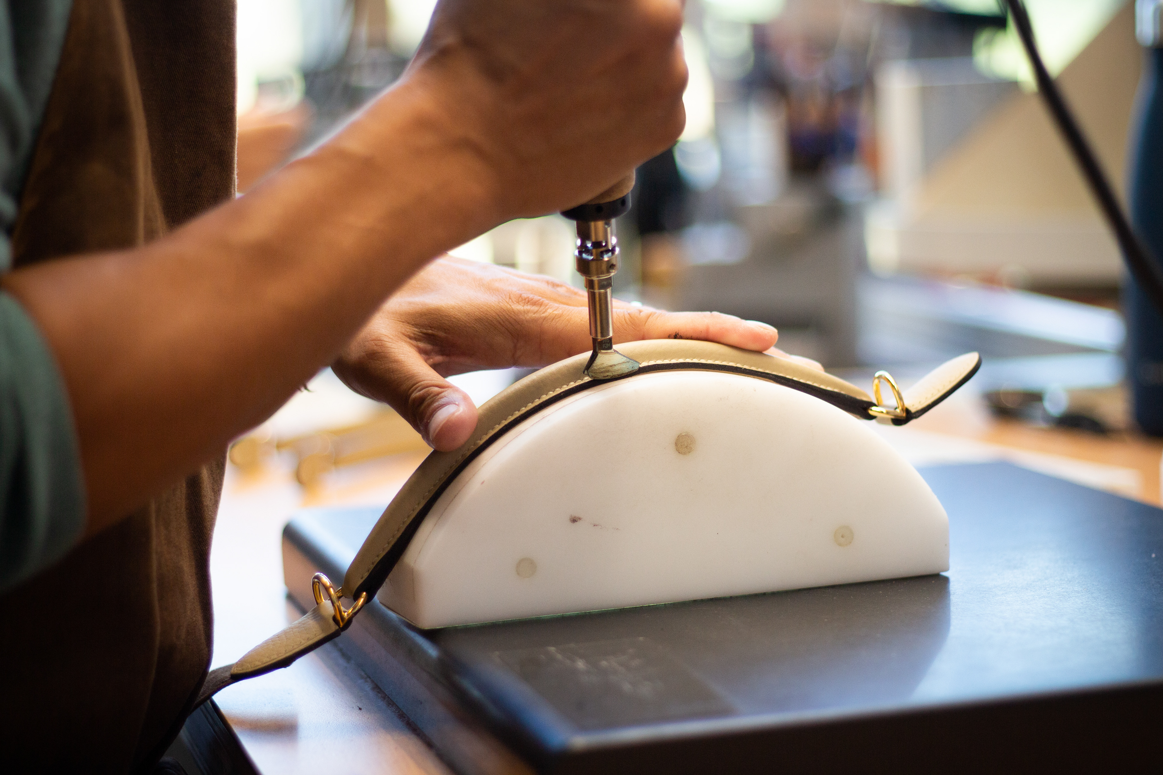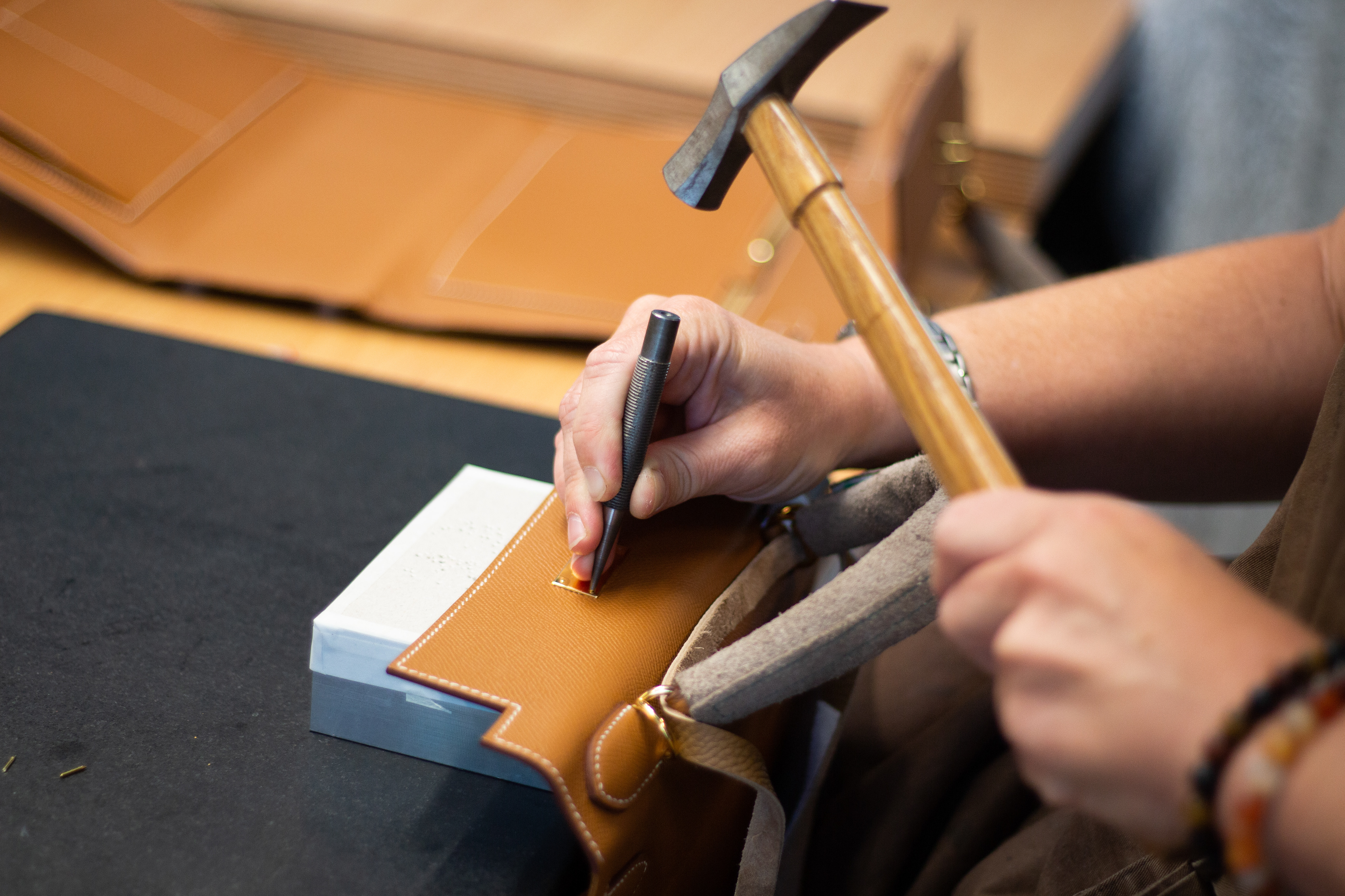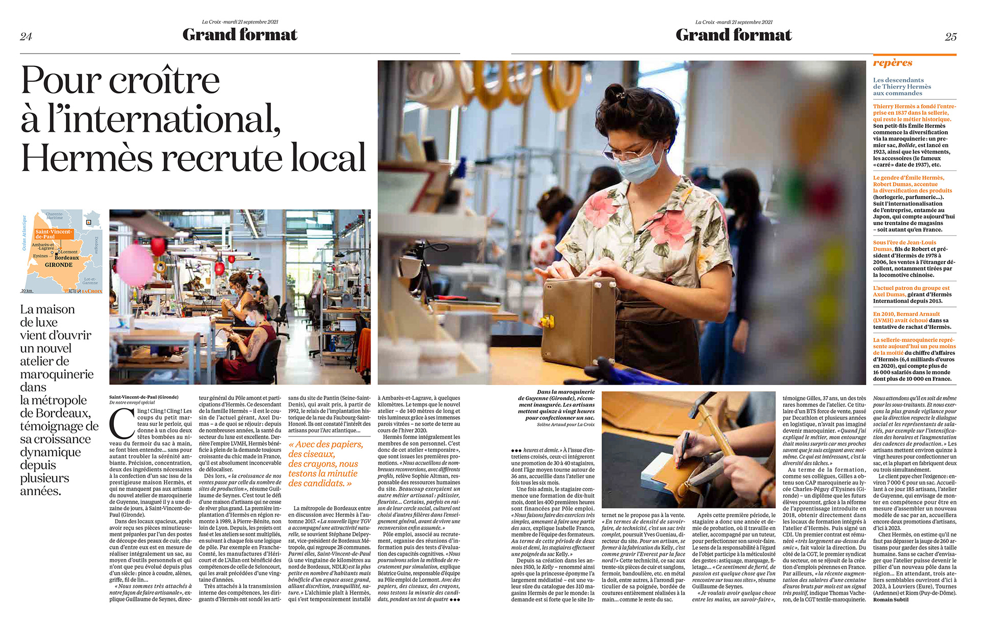 Inauguration de l'atelier de maroquinerie de Guyenne (Gironde) par la maison de luxe Hermès. Reportage pour le journal La Croix.